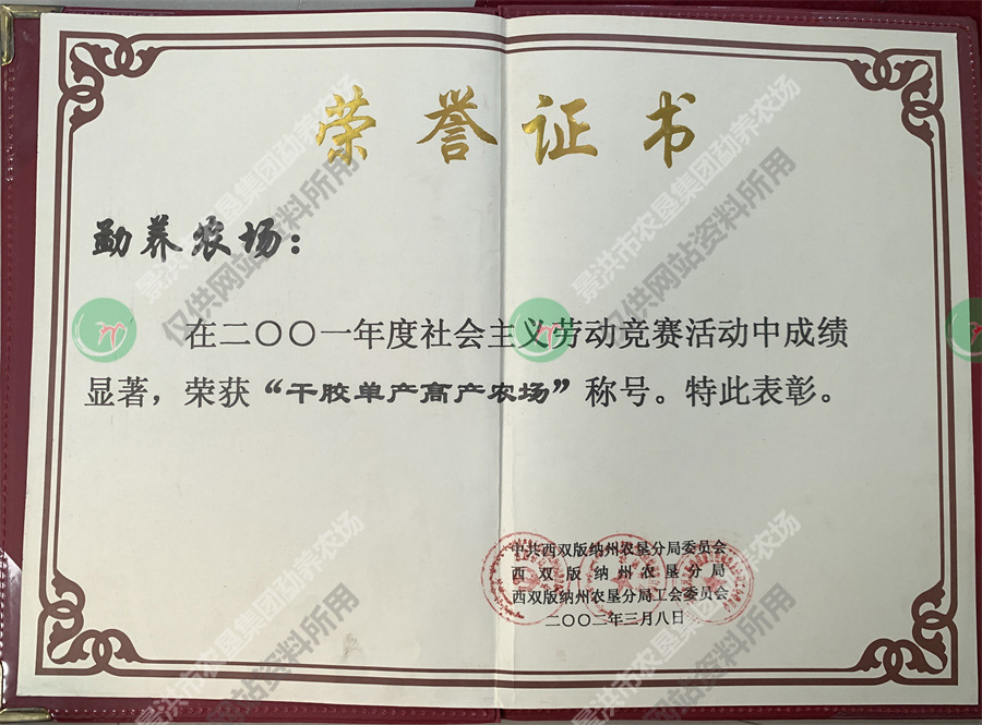 2001年干膠單產(chǎn)最高農(nóng)場(chǎng)